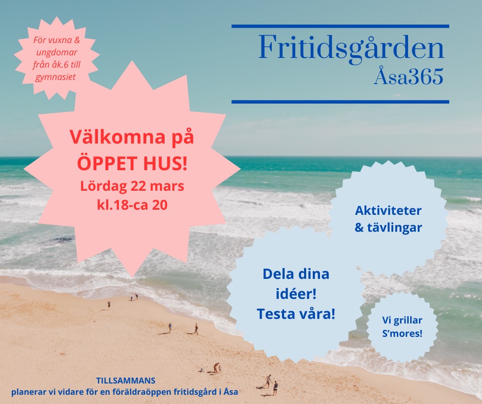 Vi hälsar ungdomar, föräldrar och andra vuxna välkomna till fritidsgården lördag 22 mars kl. 18 till runt 20. Vi kommer att grilla S’mores, ha tävlingar och aktiviteter och hoppas få fortsätta dialogen med er kring vad vi tillsammans har för möjligheter att erbjuda på vår fritidsgård.